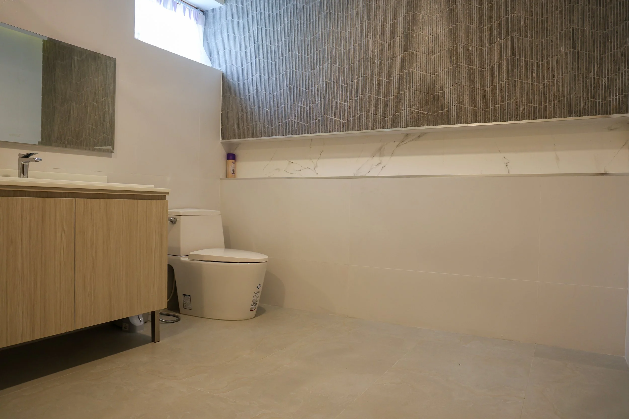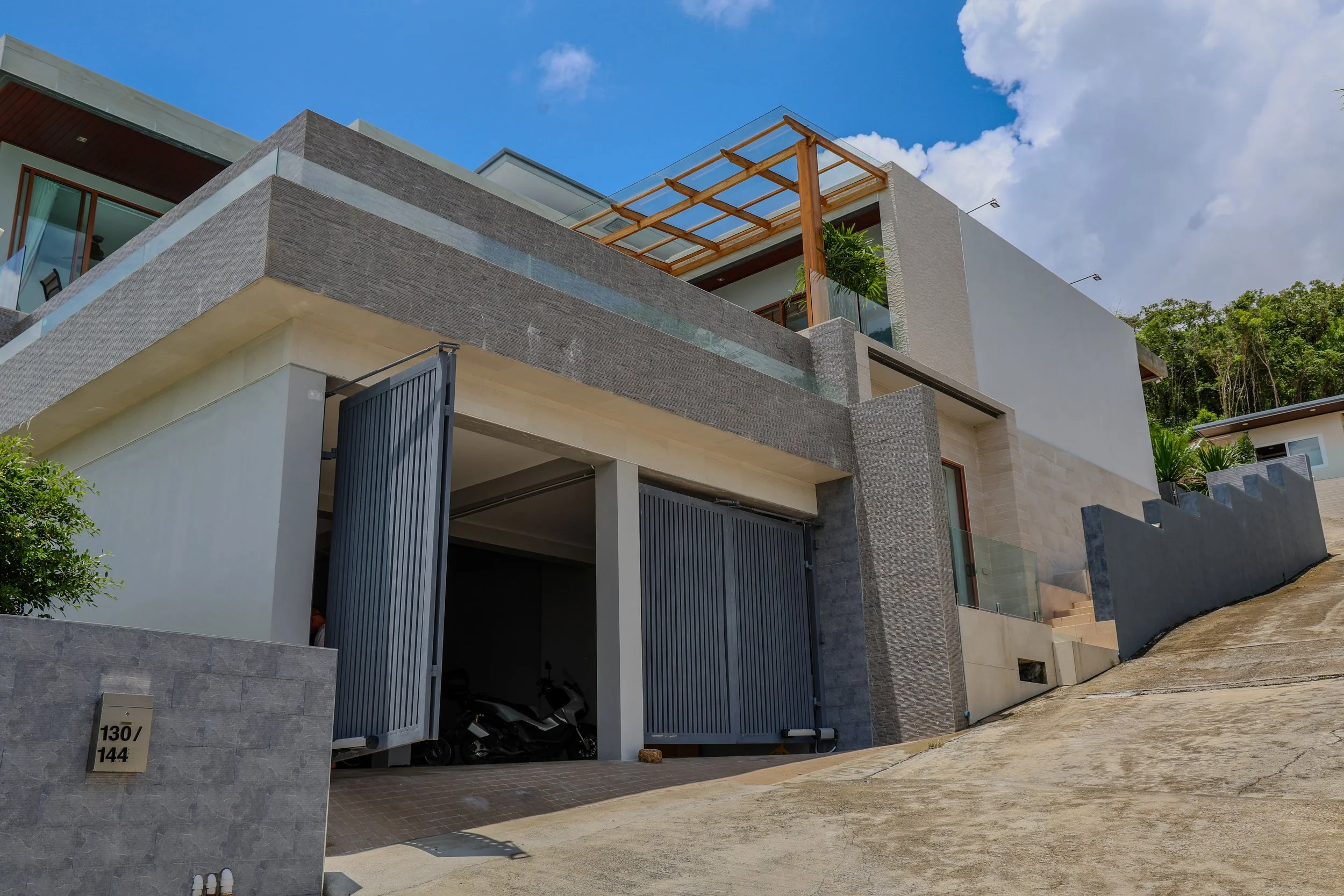 The villa includes parking space for two cars and a few scooters, along with power gates that can be conveniently opened and closed using a remote key fob. Additionally, tucked away, you'll discover a nanny suite or guest bedroom with external access from the villa.
