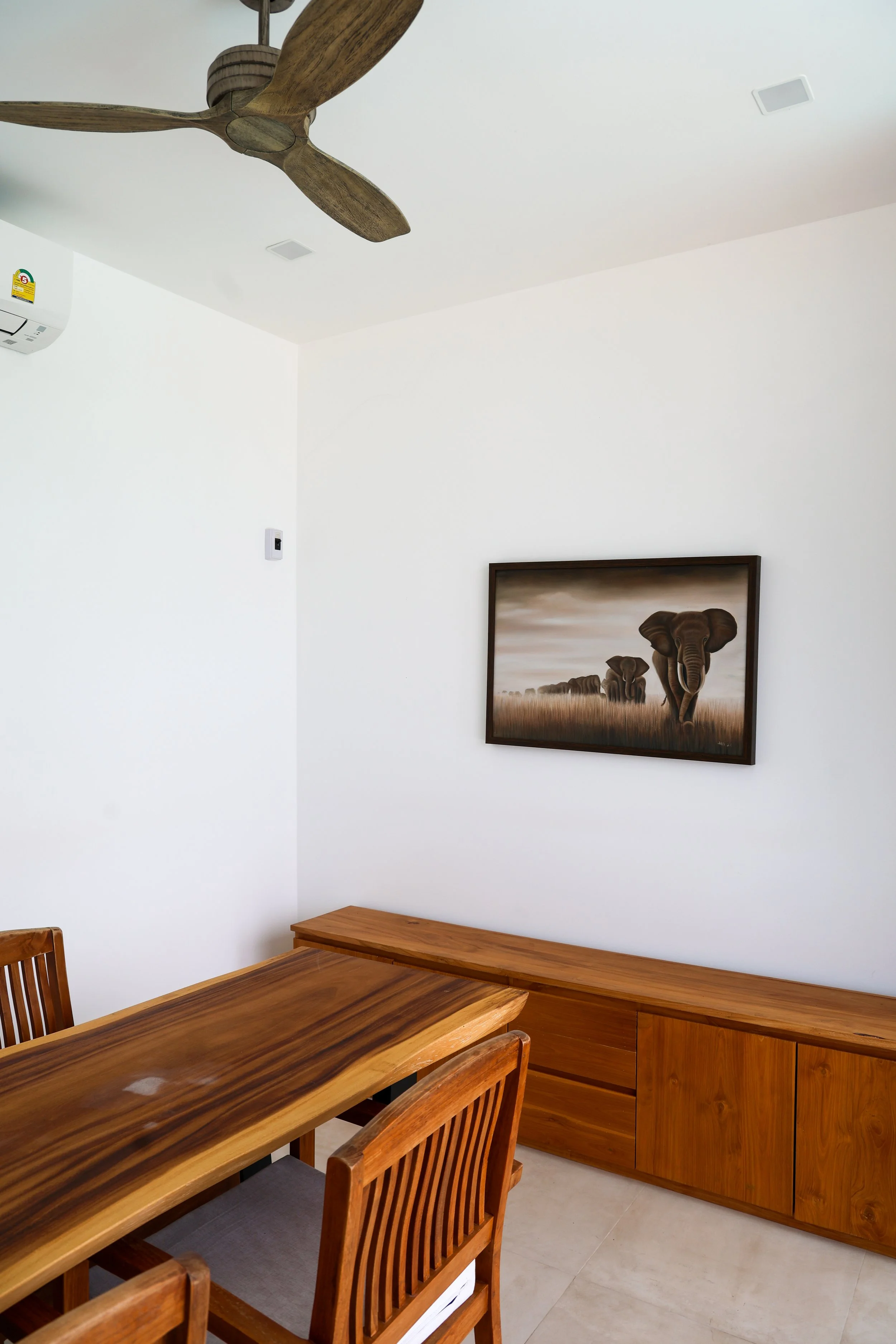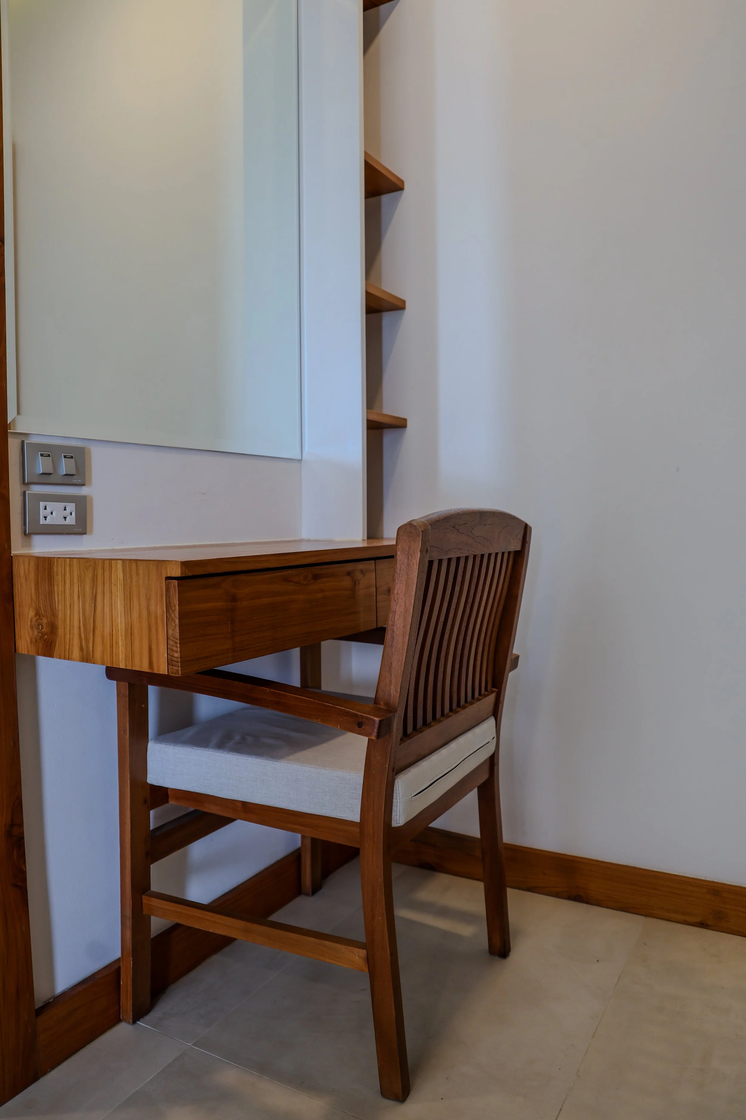 On days when work calls, the office is equipped with a spacious table and four chairs, providing a conducive environment for productivity. With high-speed internet, your video calls will run seamlessly, ensuring uninterrupted communication.