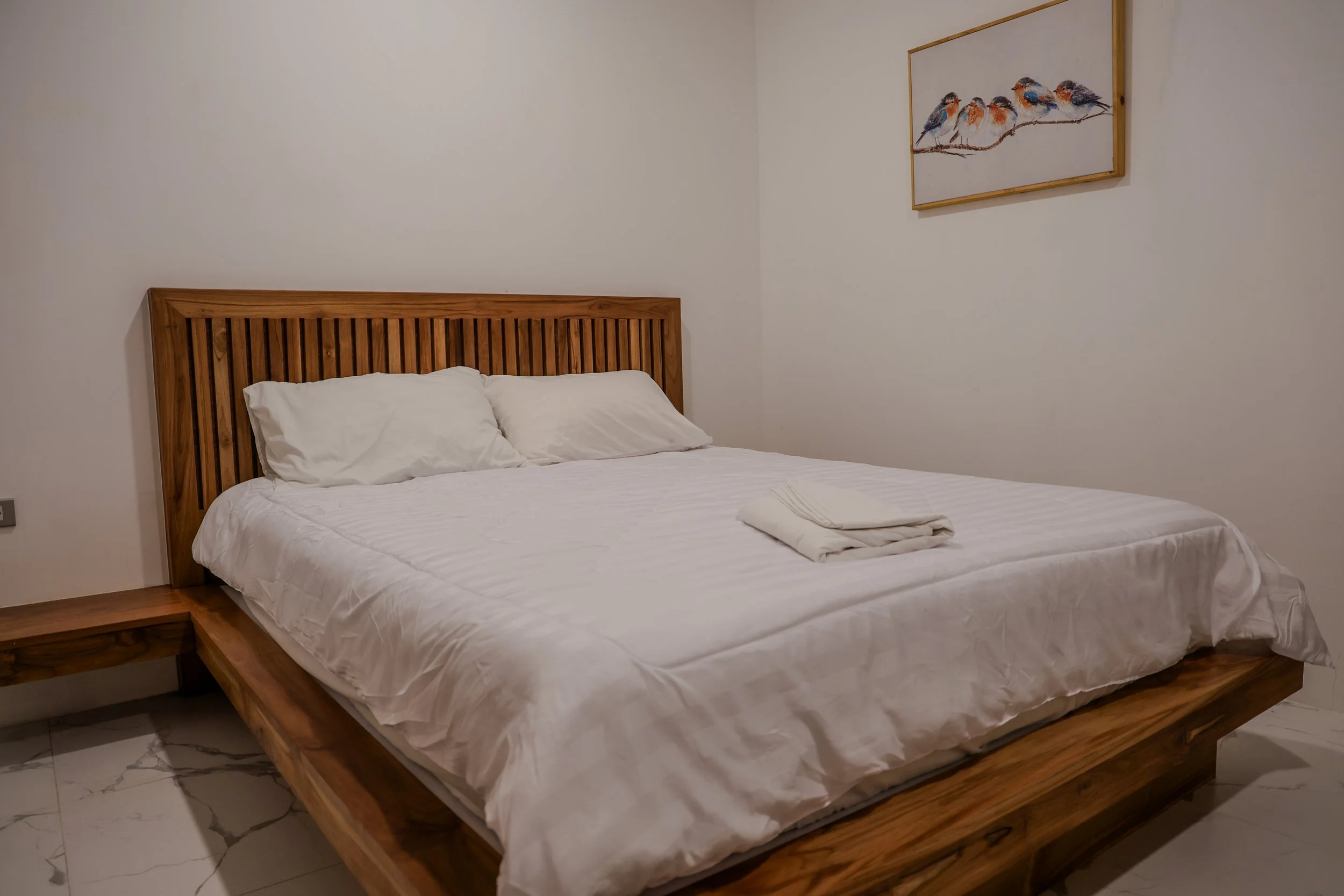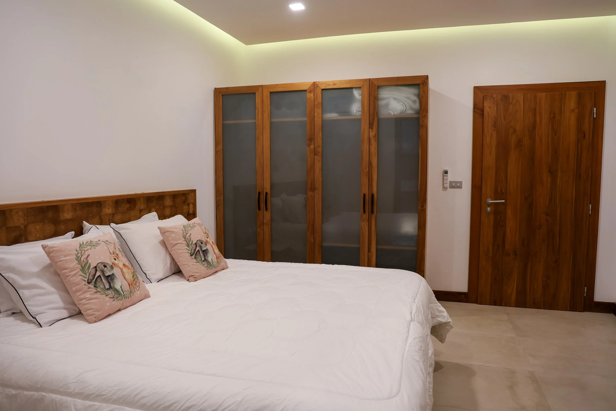 Easily accessible from the main villa, the fully enclosed apartment offers a comfortable living space complete with a television in the living room, a well-equipped kitchen and dining area, and a spacious master bedroom featuring a king-size bed and a generously sized washroom.